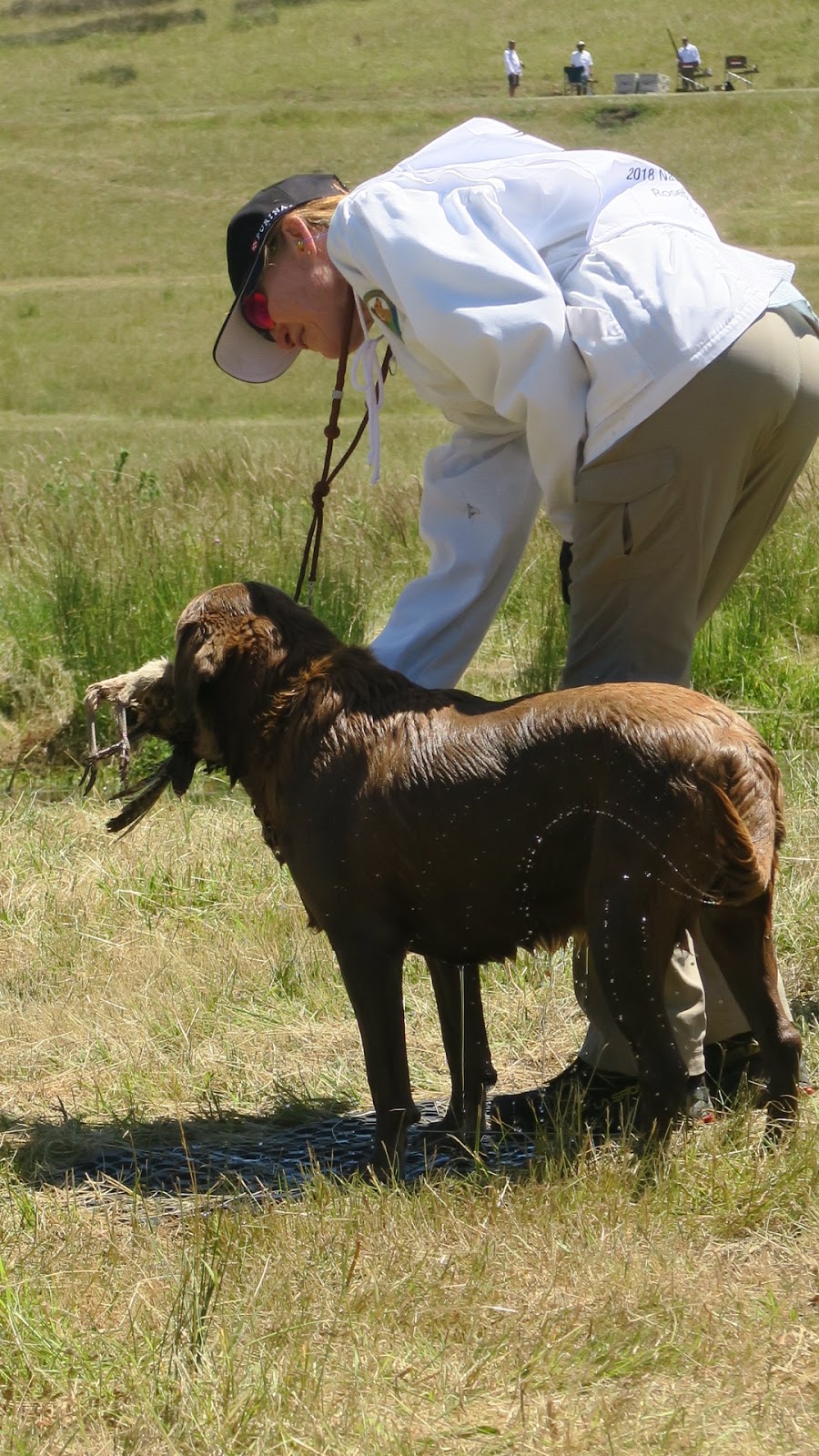 Left - The dog exited the ponds and ran through the tall cover right to the bird